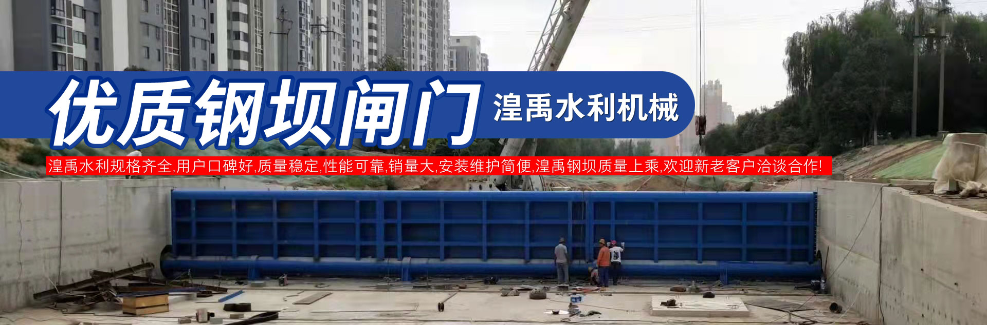 钢制/钢坝闸门系列 钢闸门强度高、重量轻、构造简单、使用轻巧、维护方便,价格低廉、寿命长,应用较为普遍。